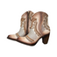 Cuadra ivory embroidered western cowgirl cowhide leather ankle boots for women. Paris Texas fashion cowboy booties.