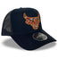 Trucker cap with 3D stitch Aztec color Lost Calf logo embroidered on front, Lost Calf stitched on left side. Yupoong Snap back - one size fits all.