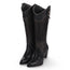 Confeccionada en piel negra de alta calidad, esta bota combina tachuelas que gritan "aquí estoy" con un bordado trabajado con la precisión de un sastre texano en su mejor día. Una obra maestra con espíritu salvaje.